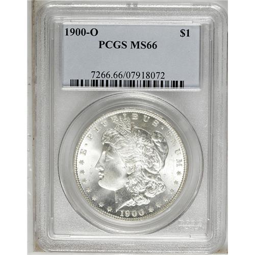 <B>1900-O<img border='0' src='http://www.heritagecoins.com/images/star.gif' width=10 height=10>$1> MS66 PCGS.</B></I> A small spot of brick-red toning appears beneath the second U in PLURIBUS. This highly lustrous piece is otherwise untoned and crisply detailed.