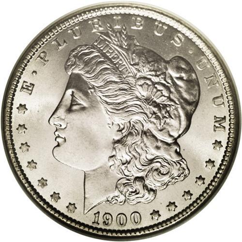 <B>1900-O<img border='0' src='http://www.heritagecoins.com/images/star.gif' width=10 height=10>$1> MS67 NGC.</B></I> Extremely clean, pristine, and superbly attractive, with untoned, satiny silver-white surfaces and a bold strike. A light hairline die crack on the left reverse joins the letter tops and the eagle's left wing at their stress points. One of the finest graded at either service. Census: 47 in 67, 0 finer (6/06).
