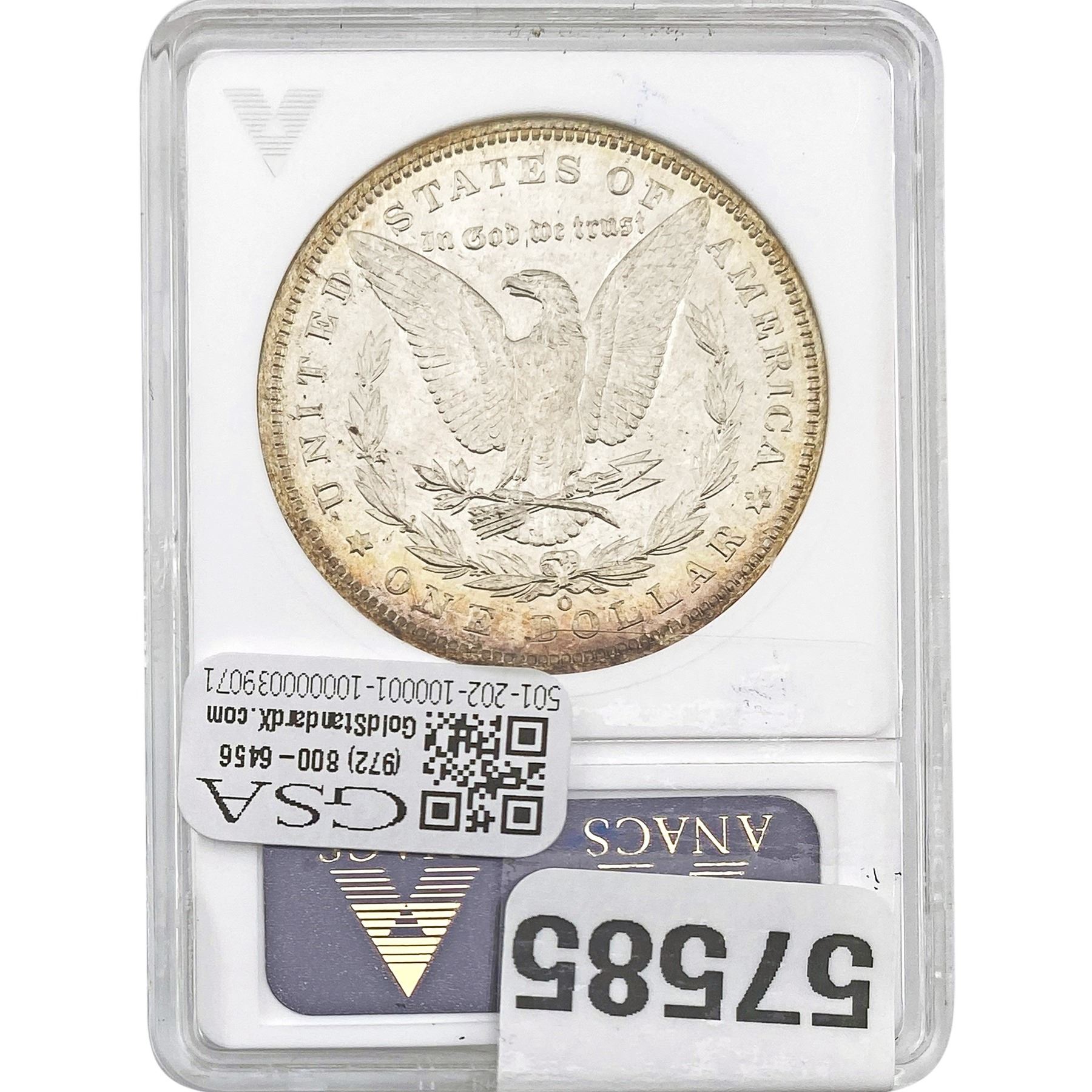 e. Coins sold referencing a third-party grading service are sold “AS IS” without any express or implied warranty, except for a guarantee by GSA that they are genuine. Removal or alteration of the holder, voids all of Bidder’s claims concerning that Product. Certain warranties may be available from the grading services and Bidders are referred to them for further details: Numismatic Guaranty Corporation (NGC), PO Box 4776, Sarasota, FL 34230, www.ngccoin.com/services/writtenguarantee.asp; Professional Coin Grading Services (PCGS), PO Box 9458, Newport Beach, CA 92658, www.pcgs.com/guarantee.html; ANACS, 6555 S. Kenton St., Ste. 303, Englewood, CO 80111; and Independent Coin Grading Co. (ICG), 7901 East Bellview, Ave., Suite 50, Englewood, CO 80111.