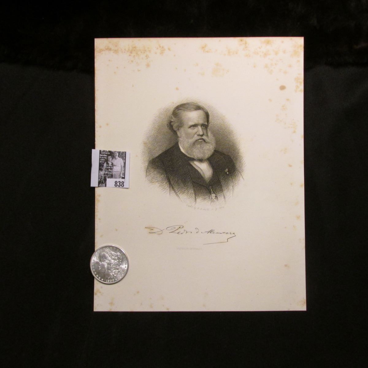 1900 P Morgan Silver Dollar, Choice BU & a black & white print of Emperor of Brazil, Pedro II, with a copy of his original signature.