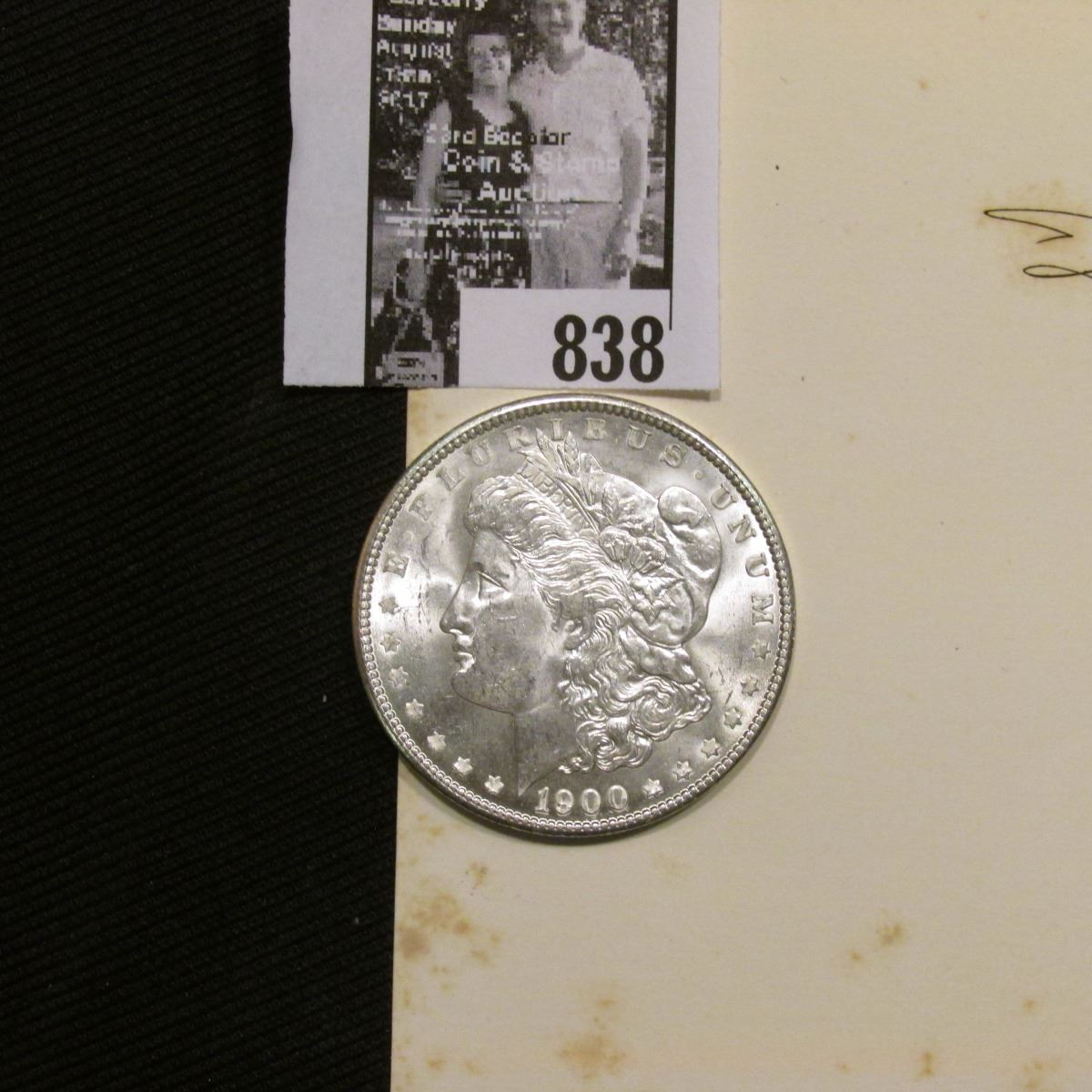 1900 P Morgan Silver Dollar, Choice BU & a black & white print of Emperor of Brazil, Pedro II, with