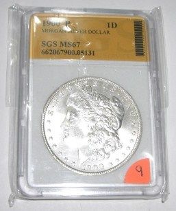 1900-P Morgan Silver Dollar *RARE MS67 CERTIFIED BY SGS* Serial #662067900.05131!! Coin comes with a Certificate of Authenticity!! ***Coin & Currency Grades, Conditions and Values are not Northern Colorado Estate Liquidators Responsibilty. Grades, Condition and Values are determined by Consigner(s) & Buyers ONLY***