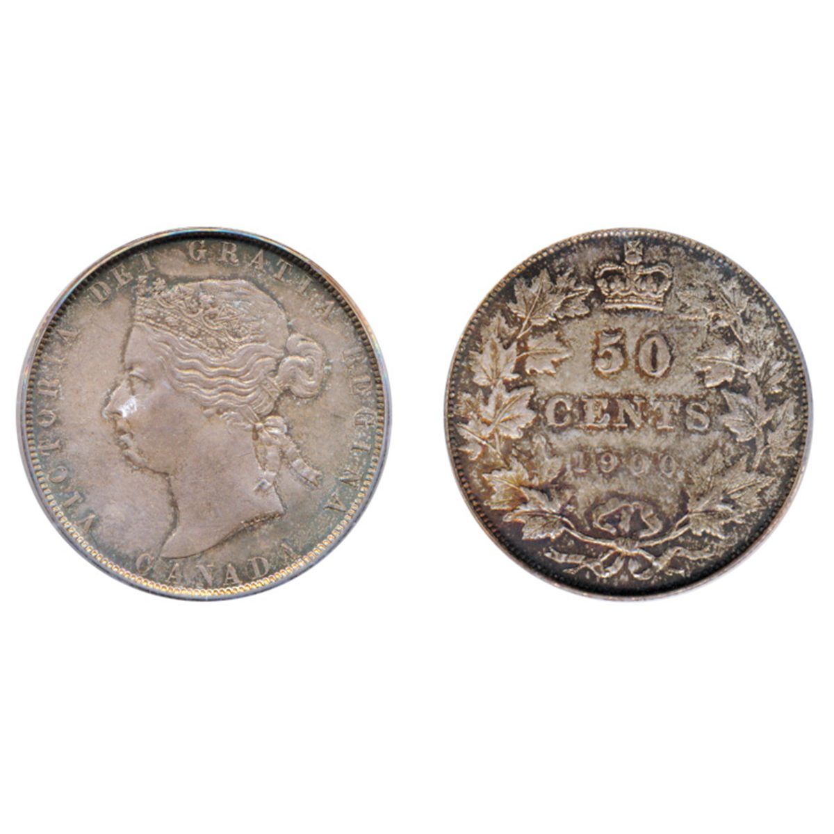 1900. PCGS graded Mint State-64. Original, even medium heavy toning over near perfect cheek and fields. Toning highlights of purple and amber. A strongly struck piece and one of the finest surviving examples, with excellent ‘eye appeal’. The Mason coin, and previously the Norweb example. The coin realized $60,000.00 in the Mason sale. Near Gem.