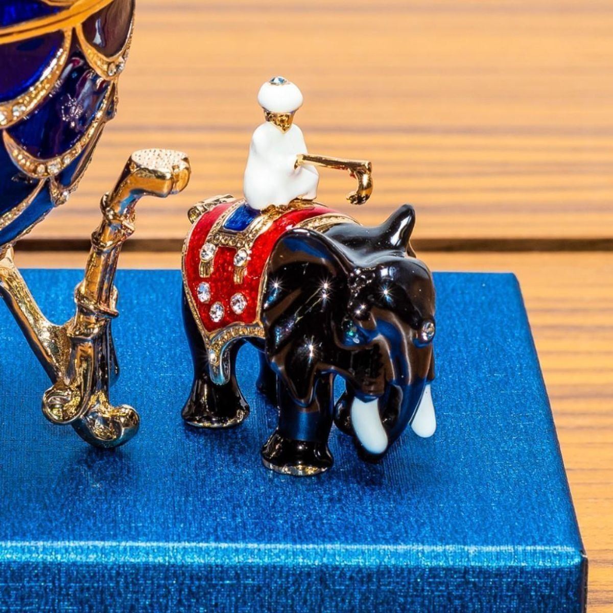 The Pine Cone egg is a jeweled enameled Easter egg made under the supervision of the Russian jeweler Peter Carl by workmaster Mikhail Perkhin in 1900. One end of the pine cone, a symbol of resurrection, is set with four diamonds, forming a quatrefoil enclosing the date “1900â€. The opposite end is set with a diamond star, enclosing a portrait diamond over a later miniature of a young woman. The eggshell opens to reveal a surprise, an Indian elephant. When wound with the original gold key, the tiny elephant, lumbers forward, shifting its weight from one side to the other, all the while turning its head and flicking its tail. Ownership: The pre-sale estimate was $3 to 4.5 million.