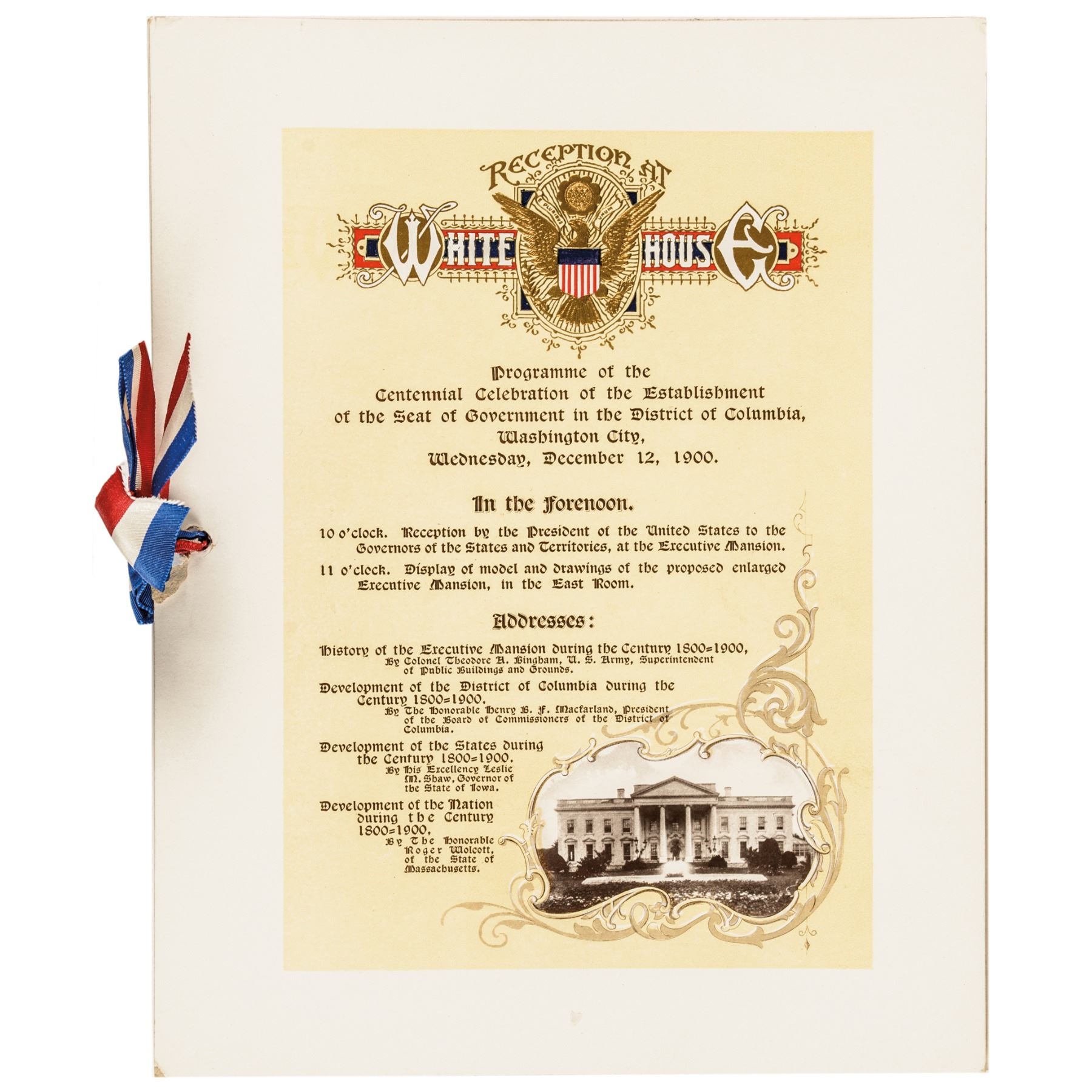 December 12, 1900-Dated, Ornate Official Program for Festivities at the “National Capital Centennial, Washington District Of Columbia,” with History of the Executive Mansion 1800-1900 Celebration, Choice Crisp Extremely Fine.