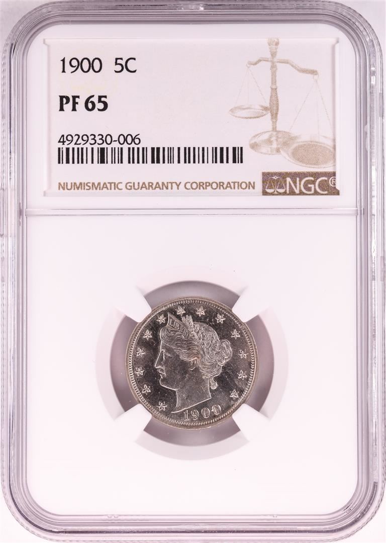 One 1900 Proof Liberty V Nickel Coin NGC PF65. NGC Certified.