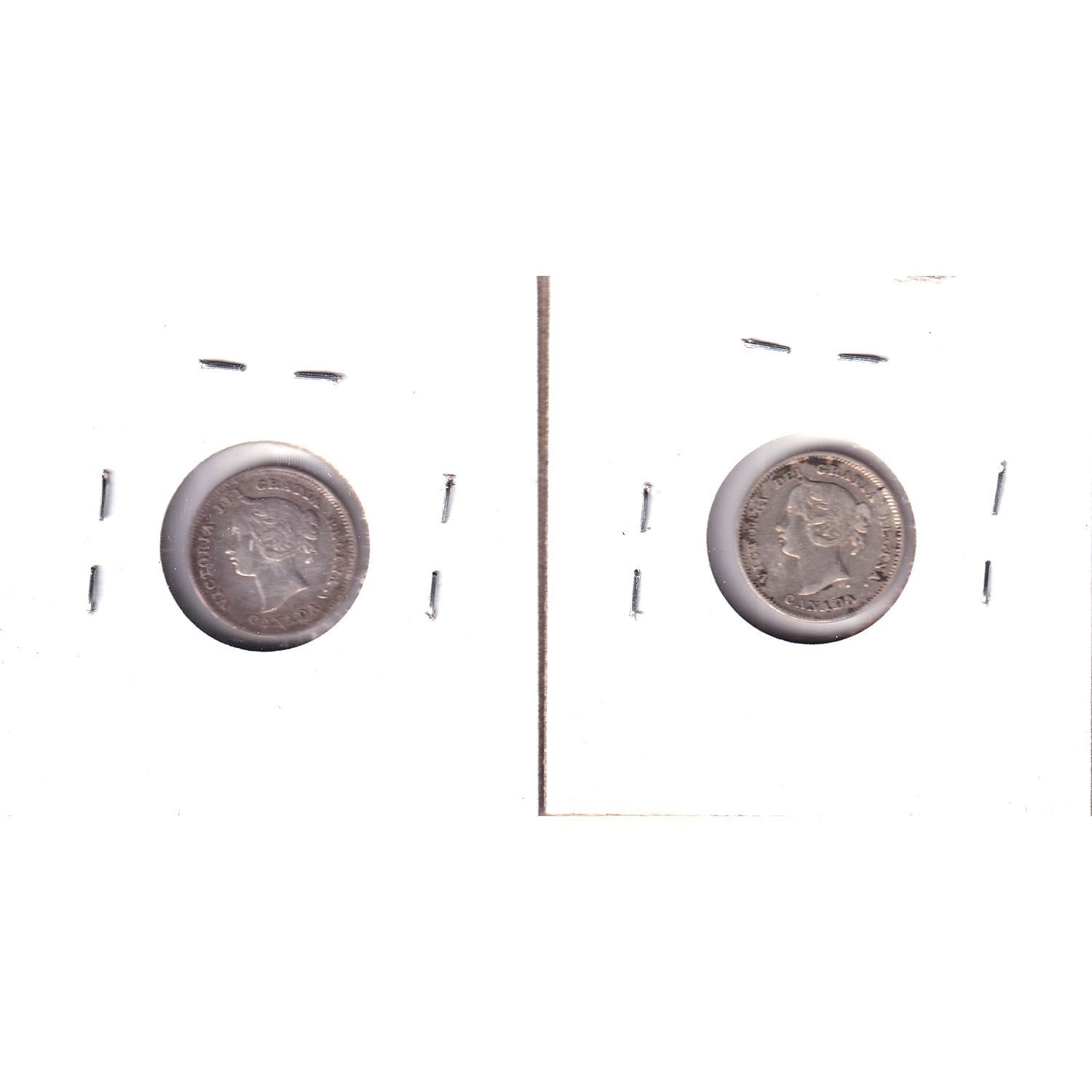 1900 Round 0 & Oval 0 Canada 5-cent F-VF (scratched/impaired) 2pcs