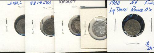 1900 Round "O" G-4, VG-8 (2), F-12 (2). A nice lot of 5 pieces.