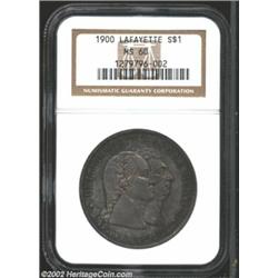1900 S$1 Lafayette Dollar MS60 NGC. DuVall 3-D, "Very Rare." Dot close to first A in AMERICA, second