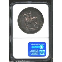 1900 S$1 Lafayette Dollar MS60 NGC. DuVall 3-D, "Very Rare." Dot close to first A in AMERICA, second T in STATES repunched at the base. Deeply toned in grey and charcoal tones which nicely conceal some hairlines and marks. More attractive than the grade would suggest, especially if one appreciates the rich color. Important notice: We expect to be auctioning lots at the rate of 200-250 per hour. Sometimes eBay Premier live bid software cannot keep up with that pace, so we strongly recommend that you place a realistic proxy bid now as insurance to avoid disappointment. Also please note that all Heritage/CAA lots purchased through eBay Premier carry a 20% Buyer's Premium. Please make sure you read the Terms and Conditions.