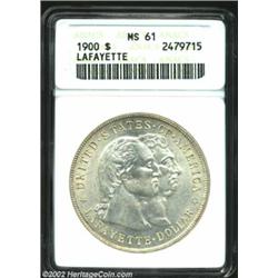 1900 S$1 Lafayette Dollar MS61 ANACS. DuVall 2-C, Rare. The second S in STATES is repunched. Nicely.