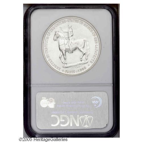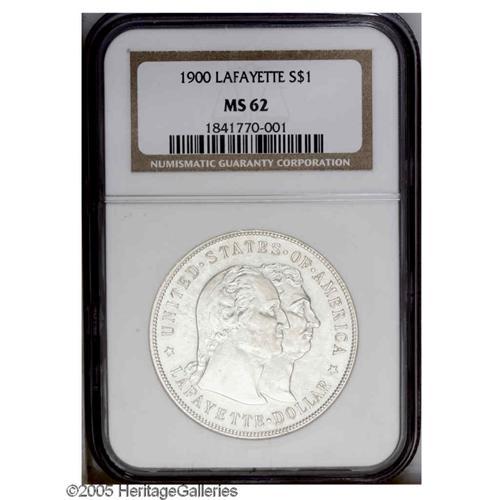 <B>1900<S$1> Lafayette Dollar MS62 NGC.</B></I> DuVall 1-B. The obverse of this popular commemorative shows some variegated milky patina.