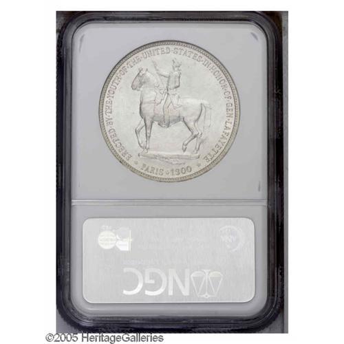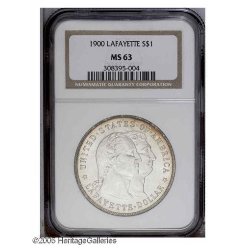 <B>1900<S$1> Lafayette Dollar MS63 NGC.</B></I> DuVall 1-A. Well struck with flashy, satiny luster, slight peripheral toning, and a few grade-defining marks on the obverse portraits.<BR><I>From The Henry R. Luhrs Collection.</B></I>
