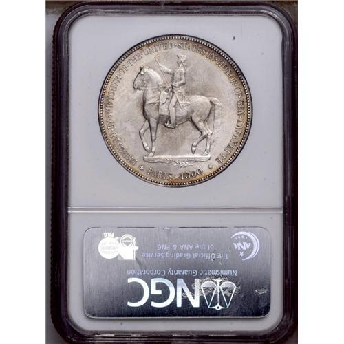 <B>1900<img border='0' src='http://www.heritagecoins.com/images/star.gif' width=10 height=10>$1> Lafayette Dollar MS63 NGC.</B></I> DuVall 1-B. Well struck and lustrous, with attractive reddish-tan and cobalt color near the borders. Minor abrasions define the grade of the piece. <BR><BR><B>Important notice:</B> Heritage usually auctions material at the rate of 200-250 lots per hour. On some occasions eBay Live bid software or the Internet may not be able to keep up with the pace of the auction. We recommend placing a realistic absentee bid now as insurance to avoid disappointment. Occasionally the auctioneer may eliminate or reject an eBay Live bid, and the auctioneer may also reopen a lot after the close of the eBay live bidding (usually because we missed an audience bid), and may reject your bid even if it shows you as the winning bidder. By bidding via eBay Live, you agree that Heritage may award the lot to another bidder at its sole discretion under the circumstances described above or any other reasonable circumstances. Since eBay bids are not shown to us until we open the lot on the floor, we treat those bids just like floor bids. In most cases the floor responds before the eBay bid is presented to us, due to Internet lag time, so for consistency we have made it a policy that floor bids are always considered first over tie eBay live bids. Also please note that all Heritage lots purchased through eBay Live carry a 20% Buyer's Premium. Please make sure you read the Terms and Conditions before you bid. This lot is being auctioned in conjunction with a live floor auction by Heritage Galleries & Auctioneers. All final auction and invoice information will be supplied by Heritage Galleries & Auctioneers, and all other information should be considered preliminary. Lot:4830 <BR><BR><B>Winning Notification and Billing:</B> After the FINAL session in this auction is complete, Heritage will send e-mail and snail mail invoices. This process normally takes several days. All final auction and invoice information will be supplied by Heritage Galleries & Auctioneers, and all other information should be considered preliminary. <BR><BR>This auction will be conducted on a live auction floor and over the Internet through eBay Live. If you choose to place an absentee bid, please take a moment to <font color='#0000ff'><u><a href='http://pages.ebay.com/liveauctions/help/before/laabsentee.html'>learn how eBay Live absentee bidding works</a></u></font><font color='#000000'>