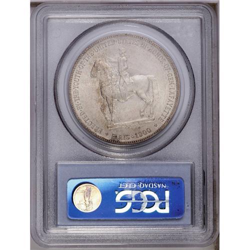 <B>1900<img border='0' src='http://www.heritagecoins.com/images/star.gif' width=10 height=10>$1> Lafayette Dollar MS63 PCGS.</B></I> DuVall 1-B. Considerable luster radiates from beneath dove-gray surfaces, with a couple of streaks of dark gray and amber patina. A couple of light ticks on Washington's chin are seen under a loupe. The Lafayette dollar is one of the keys to the commemorative silver series, and this example represents a good compromise between price and quality. <BR><BR><B>Important notice:</B> Heritage usually auctions material at the rate of 200-250 lots per hour. On some occasions eBay Live bid software or the Internet may not be able to keep up with the pace of the auction. We recommend placing a realistic absentee bid now as insurance to avoid disappointment. Occasionally the auctioneer may eliminate or reject an eBay Live bid, and the auctioneer may also reopen a lot after the close of the eBay live bidding (usually because we missed an audience bid), and may reject your bid even if it shows you as the winning bidder. By bidding via eBay Live, you agree that Heritage may award the lot to another bidder at its sole discretion under the circumstances described above or any other reasonable circumstances. Since eBay bids are not shown to us until we open the lot on the floor, we treat those bids just like floor bids. In most cases the floor responds before the eBay bid is presented to us, due to Internet lag time, so for consistency we have made it a policy that floor bids are always considered first over tie eBay live bids. Also please note that all Heritage lots purchased through eBay Live carry a 20% Buyer's Premium. Please make sure you read the Terms and Conditions before you bid. This lot is being auctioned in conjunction with a live floor auction by Heritage Galleries & Auctioneers. All final auction and invoice information will be supplied by Heritage Galleries & Auctioneers, and all other information should be considered preliminary. Lot:4832 <BR><BR><B>Winning Notification and Billing:</B> After the FINAL session in this auction is complete, Heritage will send e-mail and snail mail invoices. This process normally takes several days. All final auction and invoice information will be supplied by Heritage Galleries & Auctioneers, and all other information should be considered preliminary. <BR><BR>This auction will be conducted on a live auction floor and over the Internet through eBay Live. If you choose to place an absentee bid, please take a moment to <font color='#0000ff'><u><a href='http://pages.ebay.com/liveauctions/help/before/laabsentee.html'>learn how eBay Live absentee bidding works</a></u></font><font color='#000000'>