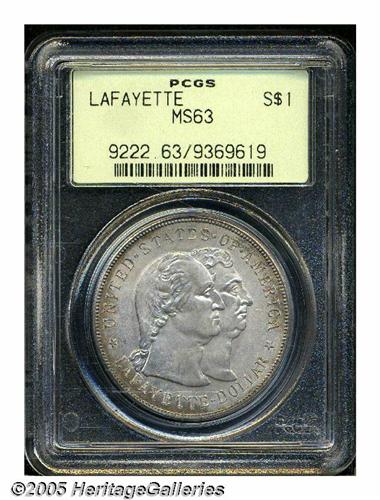 <B>1900<S$1> Lafayette Dollar MS63 PCGS.</B></I> DuVall 1-B. Potent luster and original golden-brown and battleship-gray patina assure the eye appeal of this lightly marked older holder example. A popular early Commemorative type.<BR><I>From the Dr. Kurt Peters Collection.</B></I> From the Dr. Kurt Peters Collection.