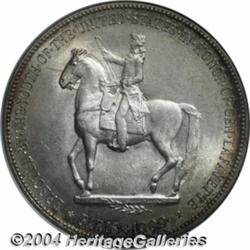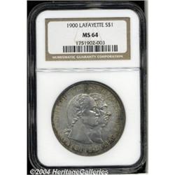 <B>1900<S$1> Lafayette Dollar MS64 NGC.</B></I> DuVall 1-B. Blushes of golden-brown and sea-green patina endow the borders of this lustrous and sharply struck near-Gem. The reverse is magnificently undisturbed, as is the obverse field, and only a couple of faint ticks on the portraits deny a higher grade. Although Lafayette Dollars are always attainable for a price, many are lackluster or have mottled patina and lack the eye appeal of the present piece. <BR><BR><B>Important notice:</B> Heritage usually auctions material at the rate of 200-250 lots per hour. On some occasions eBay Live bid software or the Internet may not be able to keep up with the pace of the auction. We recommend placing a realistic absentee bid now as insurance to avoid disappointment. Occasionally the auctioneer may eliminate or reject an eBay Live bid, and the auctioneer may also reopen a lot after the close of the eBay live bidding (usually because we missed an audience bid), and may reject your bid even if it shows you as the winning bidder. By bidding via eBay Live, you agree that Heritage may award the lot to another bidder at its sole discretion under the circumstances described above or any other reasonable circumstances. Since eBay bids are not shown to us until we open the lot on the floor, we treat those bids just like floor bids. In most cases the floor responds before the eBay bid is presented to us, due to Internet lag time, so for consistency we have made it a policy that floor bids are always considered first over tie eBay live bids. Also please note that all Heritage lots purchased through eBay Live carry a 20% Buyer's Premium. Please make sure you read the Terms and Conditions before you bid. </span></font></tr></table></td></tr></table>
