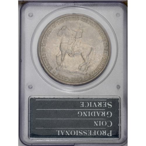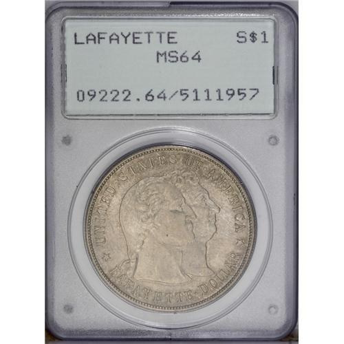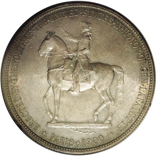<B>1900<img border='0' src='http://www.heritagecoins.com/images/star.gif' width=10 height=10>$1> Lafayette Dollar MS64 PCGS.</B></I> DuVall 2-C. Both sides are deeply toned in steel-gray and autumn-pink hues that might be too deep for some tastes, but appear to be totally natural. The dual portraits are minimally abraded for the assigned grade. Housed in an early PCGS holder. <BR><BR><B>Important notice:</B> Heritage usually auctions material at the rate of 200-250 lots per hour. On some occasions eBay Live bid software or the Internet may not be able to keep up with the pace of the auction. We recommend placing a realistic absentee bid now as insurance to avoid disappointment. Occasionally the auctioneer may eliminate or reject an eBay Live bid, and the auctioneer may also reopen a lot after the close of the eBay live bidding (usually because we missed an audience bid), and may reject your bid even if it shows you as the winning bidder. By bidding via eBay Live, you agree that Heritage may award the lot to another bidder at its sole discretion under the circumstances described above or any other reasonable circumstances. Since eBay bids are not shown to us until we open the lot on the floor, we treat those bids just like floor bids. In most cases the floor responds before the eBay bid is presented to us, due to Internet lag time, so for consistency we have made it a policy that floor bids are always considered first over tie eBay live bids. Also please note that all Heritage lots purchased through eBay Live carry a 20% Buyer's Premium. Please make sure you read the Terms and Conditions before you bid. This lot is being auctioned in conjunction with a live floor auction by Heritage Galleries & Auctioneers. All final auction and invoice information will be supplied by Heritage Galleries & Auctioneers, and all other information should be considered preliminary. Lot:4837 <BR><BR><B>Winning Notification and Billing:</B> After the FINAL session in this auction is complete, Heritage will send e-mail and snail mail invoices. This process normally takes several days. All final auction and invoice information will be supplied by Heritage Galleries & Auctioneers, and all other information should be considered preliminary. <BR><BR>This auction will be conducted on a live auction floor and over the Internet through eBay Live. If you choose to place an absentee bid, please take a moment to <font color='#0000ff'><u><a href='http://pages.ebay.com/liveauctions/help/before/laabsentee.html'>learn how eBay Live absentee bidding works</a></u></font><font color='#000000'>