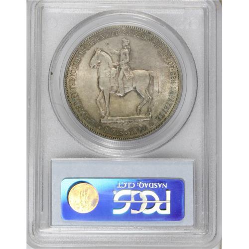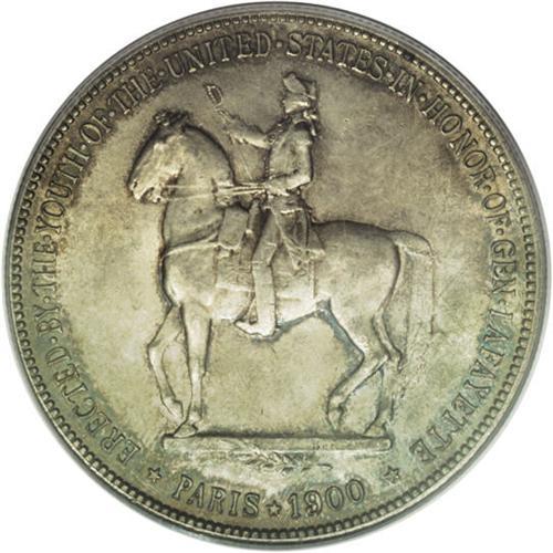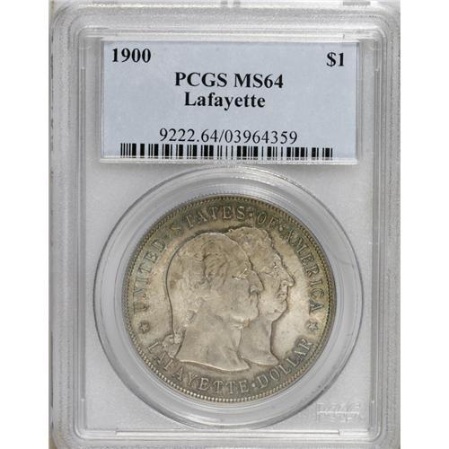 <B>1900 S$1 Lafayette Dollar MS64 PCGS.</B></I> DuVall 1-B. The dove-gray and autumn-gold interiors are encompassed by peripheral sea-green shades. This satiny near-Gem is decisively struck and lacks individually relevant marks. All Lafayette dollars were struck on the centennial of Washington's death, December 14, 1799.<BR><BR><b>Shipping:</b> Coins & Currency (<a target="_blank" href="http://www.heritageauctions.com/common/shipping.php">view shipping information</a>)