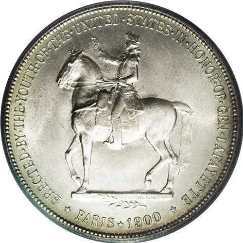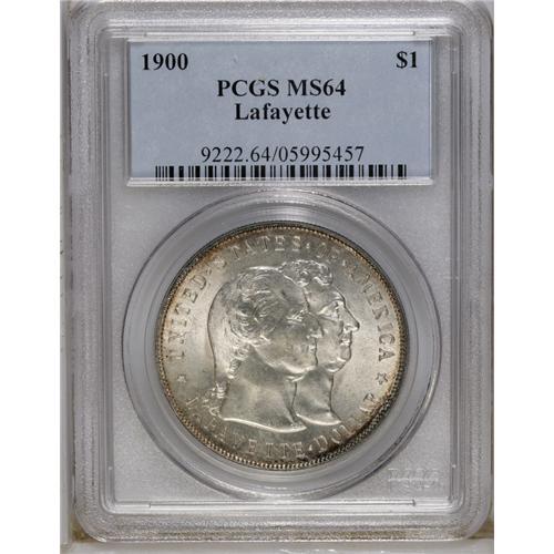 <B>1900 S$1 Lafayette Dollar MS64 PCGS.</B></I> DuVall 1-B. This crisply struck and lustrous near-Gem has medium russet-red borders and pearl-gray fields and devices. Minor contact on the portraits is all the limits the grade. A pleasing example of the only commemorative silver dollar prior to 1983.<BR><BR><b>Shipping:</b> Coin/Currency (<a target="_blank" href="http://www.heritageauctions.com/common/shipping.php">view shipping information</a>)