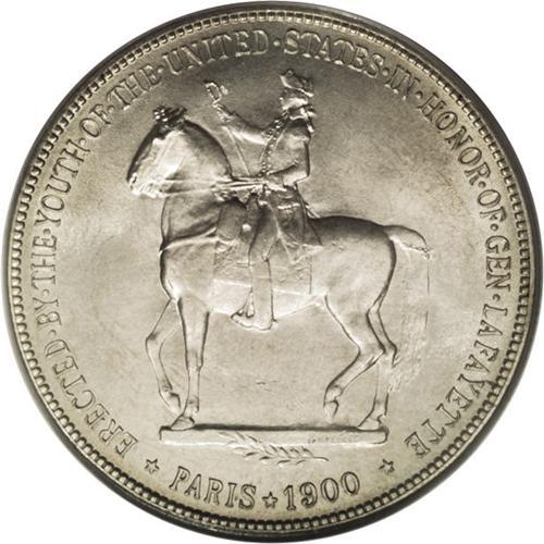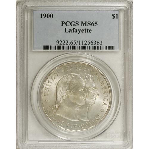 <B>1900 S$1 Lafayette Dollar MS65 PCGS.</B></I> DuVall 1-B. Hints of honey patina endow this thoroughly lustrous and undisturbed Gem. A well struck and attractive example of this conditionally challenging type. Most Lafayette dollars have diminished luster or an abraded portrait, unlike the present piece. One of two George Washington appearances within the classic commemorative series.<BR><BR><b>Shipping:</b> Coins & Currency (<a target="_blank" href="http://www.heritageauctions.com/common/shipping.php">view shipping information</a>)