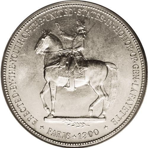<B>1900 S$1 Lafayette Dollar MS65 PCGS.</B></I> DuVall 1-B. There is no doubt that this is the most common variety of the year. This frosty Gem has a strong strike with all design details boldly rendered. Even the individual facial details of General Lafayette on the reverse can be seen. Frosty white mint luster is evident with no trace of toning.<BR><BR><b>Shipping:</b> Coin/Currency (<a target="_blank" href="http://www.heritageauctions.com/common/shipping.php">view shipping information</a>)