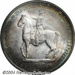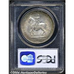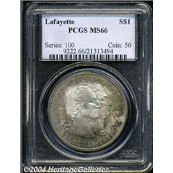 <B>1900<S$1> Lafayette Dollar MS66 PCGS.</B></I> DuVall 1-B. The only die marriage which has the lowest right leaf on the laurel branch pointing between the 19 in the date. Rich emerald-green, gray, golden, and ruby-red colors endow the obverse and reverse, although slightly more color is seen on the reverse. The statue was partially financed through the contributions of American schoolchildren, hence the reverse legend "ERECTED BY THE YOUTH OF THE UNITED STATES." A satiny, crisply struck, and well preserved Gem of this sole Silver Dollar Commemorative issue from the 'classic' 1892-1954 series. Population: 81 in 66, 5 finer (3/04). <BR><BR><B>Important notice:</B> Heritage usually auctions material at the rate of 200-250 lots per hour. On some occasions eBay Live bid software or the Internet may not be able to keep up with the pace of the auction. We recommend placing a realistic absentee bid now as insurance to avoid disappointment. Occasionally the auctioneer may eliminate or reject an eBay Live bid, and the auctioneer may also reopen a lot after the close of the eBay live bidding (usually because we missed an audience bid), and may reject your bid even if it shows you as the winning bidder. By bidding via eBay Live, you agree that Heritage may award the lot to another bidder at its sole discretion under the circumstances described above or any other reasonable circumstances. Since eBay bids are not shown to us until we open the lot on the floor, we treat those bids just like floor bids. In most cases the floor responds before the eBay bid is presented to us, due to Internet lag time, so for consistency we have made it a policy that floor bids are always considered first over tie eBay live bids. Also please note that all Heritage lots purchased through eBay Live carry a 20% Buyer's Premium. Please make sure you read the Terms and Conditions before you bid. </span></font></tr></table></td></tr></table>