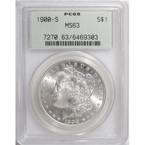 <B>1900-S $1 MS63 PCGS.</B></I> PCGS Population (1206/1831). NGC Census: (649/928). Mintage: 3,540,000. Numismedia Wsl. Price for NGC/PCGS coin in MS63: $325. (#7270)<BR><BR><B>Coin Engraver:</B> George T. Morgan<BR><BR><b>Shipping:</b> Coins & Currency (<a target="_blank" href="http://www.heritageauctions.com/common/shipping.php">view shipping information</a>)