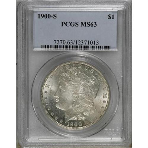 <B>1900-S $1 MS63 PCGS.</B></I> PCGS Population (1220/1875). NGC Census: (658/940). Mintage: 3,540,000. Numismedia Wsl. Price for NGC/PCGS coin in MS63: $325. (#7270)<BR><BR><B>Coin Engraver:</B> George T. Morgan<BR><BR><b>Shipping:</b> Coins & Currency (<a target="_blank" href="http://www.heritageauctions.com/common/shipping.php">view shipping information</a>)
