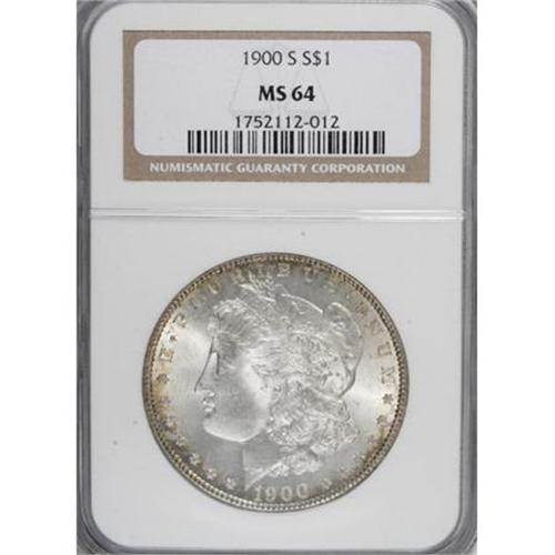 <B>1900-S $1 MS64 NGC.</B></I> NGC Census: (747/171). PCGS Population (1270/532). Mintage: 3,540,000. Numismedia Wsl. Price for NGC/PCGS coin in MS64: $440. (#7270)<BR><BR><B>Coin Engraver:</B> George T. Morgan<BR><BR><b>Shipping:</b> Coins & Currency (<a target="_blank" href="http://www.heritageauctions.com/common/shipping.php">view shipping information</a>)