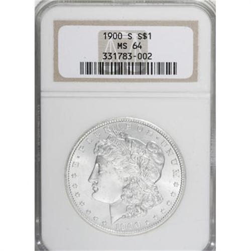 <B>1900-S $1 MS64 NGC.</B></I> . NGC Census: (761/169). PCGS Population (1300/549). Mintage: 3,540,000. Numismedia Wsl. Price for NGC/PCGS coin in MS64: $440. (#7270)<BR><BR><B>Coin Engraver:</B> George T. Morgan<BR><BR><b>Shipping:</b> Coins & Currency (<a target="_blank" href="http://www.heritageauctions.com/common/shipping.php">view shipping information</a>)