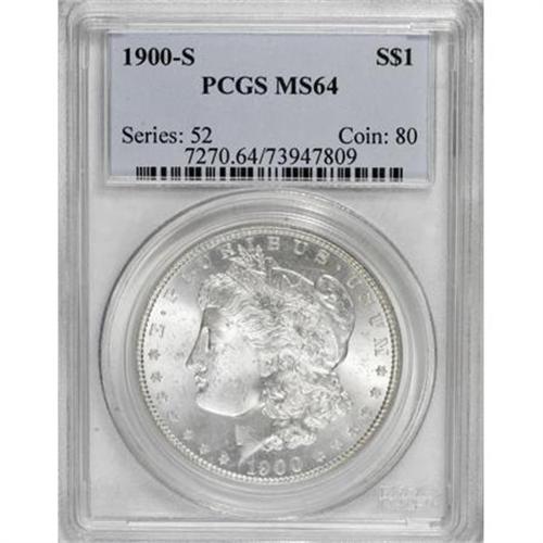 <B>1900-S $1 MS64 PCGS.</B></I> PCGS Population (1270/532). NGC Census: (747/171). Mintage: 3,540,000. Numismedia Wsl. Price for NGC/PCGS coin in MS64: $440. (#7270)<BR><BR><B>Coin Engraver:</B> George T. Morgan<BR><BR><b>Shipping:</b> Coins & Currency (<a target="_blank" href="http://www.heritageauctions.com/common/shipping.php">view shipping information</a>)