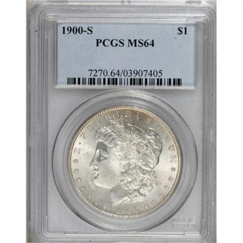 <B>1900-S $1 MS64 PCGS.</B></I> PCGS Population (1275/538). NGC Census: (755/169). Mintage: 3,540,000. Numismedia Wsl. Price for NGC/PCGS coin in MS64: $440. (#7270)<BR><BR><B>Coin Engraver:</B> George T. Morgan<BR><BR><b>Shipping:</b> Coins & Currency (<a target="_blank" href="http://www.heritageauctions.com/common/shipping.php">view shipping information</a>)