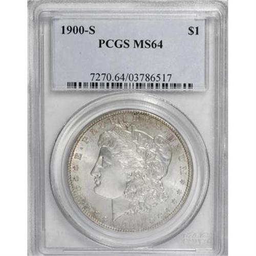 <B>1900-S $1 MS64 PCGS.</B></I> . PCGS Population (1300/549). NGC Census: (761/169). Mintage: 3,540,000. Numismedia Wsl. Price for NGC/PCGS coin in MS64: $460. (#7270)<BR><BR><B>Coin Engraver:</B> George T. Morgan<BR><BR><b>Shipping:</b> Coins & Currency (<a target="_blank" href="http://www.heritageauctions.com/common/shipping.php">view shipping information</a>)
