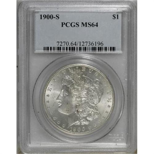 <B>1900-S $1 MS64 PCGS.</B></I> PCGS Population (1318/554). NGC Census: (767/172). Mintage: 3,540,000. Numismedia Wsl. Price for NGC/PCGS coin in MS64: $460. (#7270)<BR><BR><B>Coin Engraver:</B> George T. Morgan<BR><BR><b>Shipping:</b> Coins & Currency (<a target="_blank" href="http://www.heritageauctions.com/common/shipping.php">view shipping information</a>)