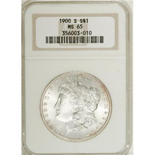 <B>1900-S $1 MS65 NGC.</B></I> A shining Gem representative of this late 19th century issue, well-defined save for the hair above Liberty's ear. The surfaces are largely untoned save for a hint of khaki patina at the margins. In a prior generation holder.<BR><I>From The Silver Fox Collection.</B></I><BR><BR><b>Shipping:</b> Coins & Currency (<a target="_blank" href="http://www.heritageauctions.com/common/shipping.php">view shipping information</a>)