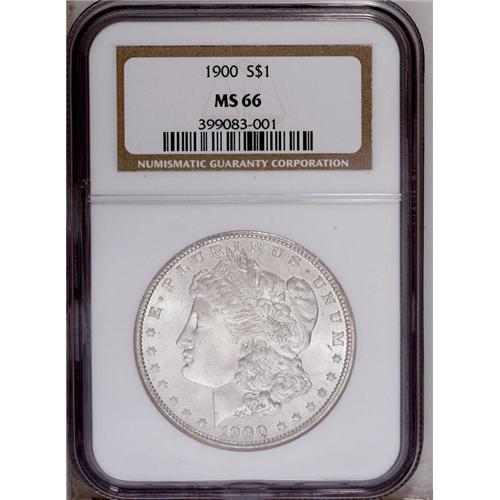 1900 S$1 MS66 NGC. Brilliant and untoned, with satiny