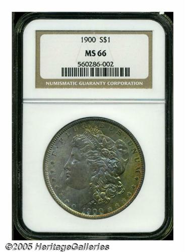 <B>1900<S$1> MS66 NGC.</B></I> Softly struck over the centers, with luscious golden-orange, teal, charcoal-gray, and crimson toning, and lustrous, expertly preserved surfaces that seem nearly pristine. A visually impressive premium Gem. Quite scarce any finer.