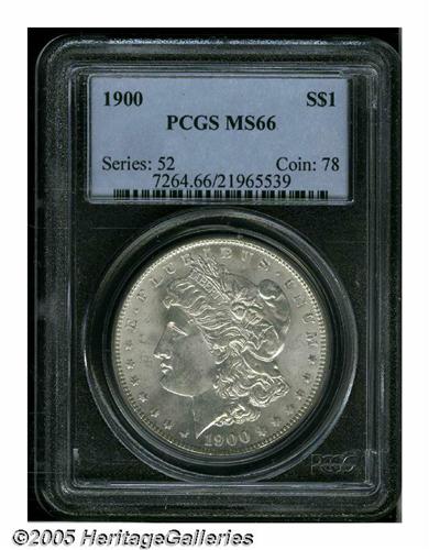 <B>1900<S$1> MS66 PCGS.</B></I> Sharply struck and fully brilliant with excellent eye appeal. Quite a low population for such a common issue. Population: 408 in 66, 13 finer (5/05).