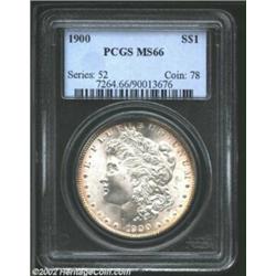 1900 S$1 MS66 PCGS. The borders have light gold and ruby-red patina. A highly lustrous Gem with an e