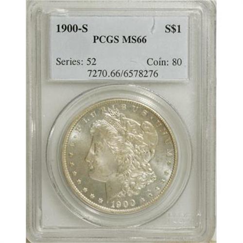 <B>1900-S $1 MS66 PCGS.</B></I> A gorgeous Premium Gem example of this S-mint dollar issue, with mildly reflective fields and only trivial obverse grazes that prevent an even higher grade. The coin is generally well struck, although the hair above Liberty's ear lacks definition. All S-mint dollars from the 1900s are scarce. Population: 91 in 66, 1 finer (1/08). <BR><I>From The Oxford Collection.</B></I><BR><BR><B>Coin Engraver:</B> George T. Morgan<BR><BR><b>Shipping:</b> Coins & Currency (<a target="_blank" href="http://www.heritageauctions.com/common/shipping.php">view shipping information</a>)