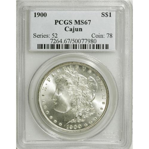 <B>1900 S$1 MS67 PCGS.</B></I> Ex: Cajun. The surfaces of this Superb Gem are fully brilliant with frosty silver mint luster. It is a nicely struck piece, although not fully detailed, as slight weakness is noted over Liberty's ear. This is a wonderful piece for the discriminating buyer. Population: 17 in 67, 0 finer (2/07).<BR><I>From The Jackson Hole Collection.</B></I><BR><BR><b>Shipping:</b> Coins & Currency (<a target="_blank" href="http://www.heritageauctions.com/common/shipping.php">view shipping information</a>)