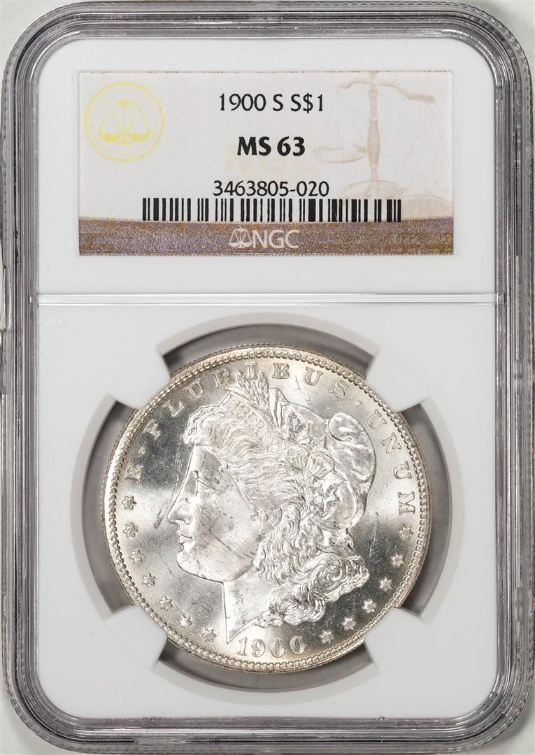 One 1900-S $1 Morgan Silver Dollar Coin NGC MS63. NGC Certified.