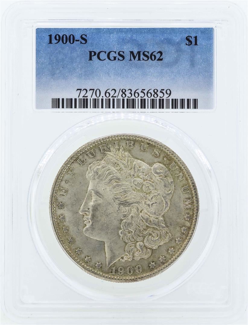One 1900-S $1 Morgan Silver Dollar Coin PCGS MS62. PCGS Certified.