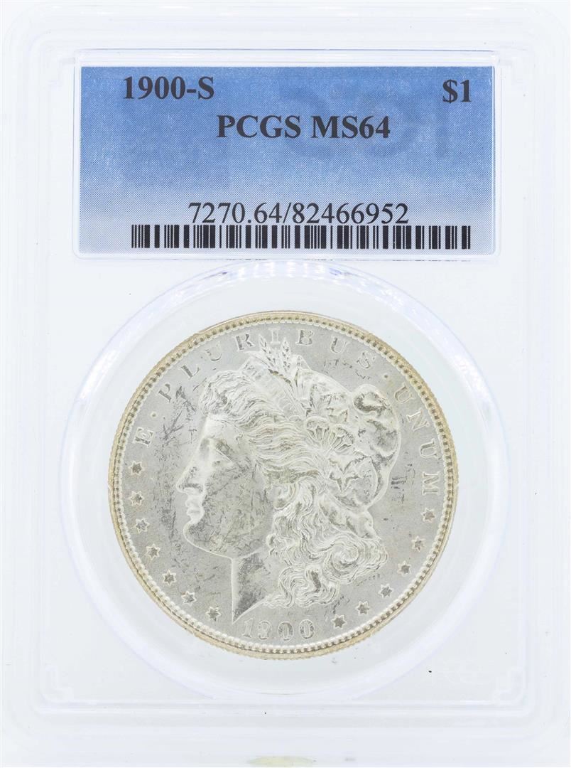 One 1900-S $1 Morgan Silver Dollar Coin PCGS MS64. PCGS Graded.
