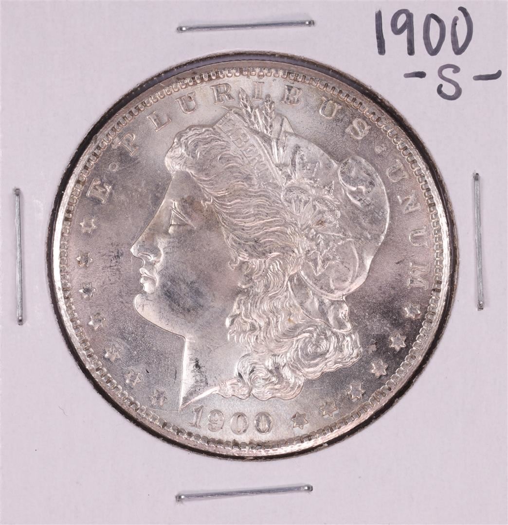 One 1900-S $1 Morgan Silver Dollar Coin.