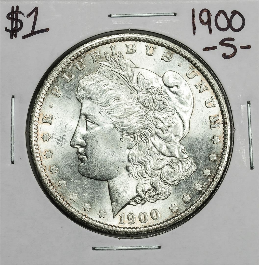 One 1900-S $1 Morgan Silver Dollar Coin.