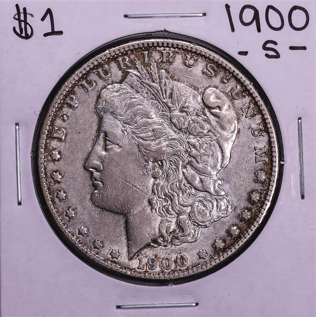 One 1900-S $1 Morgan Silver Dollar Coin.