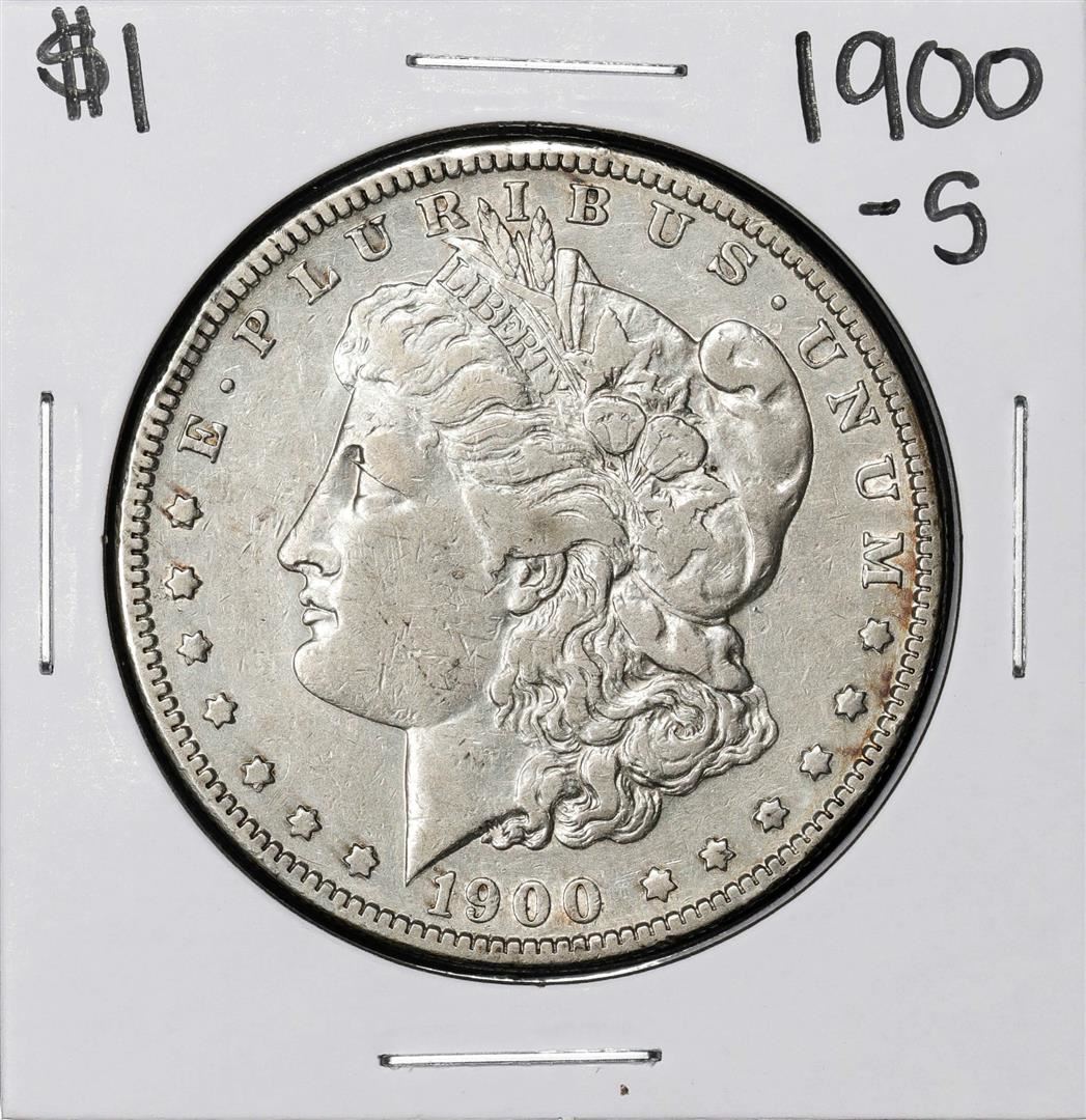 One 1900-S $1 Morgan Silver Dollar Coin.