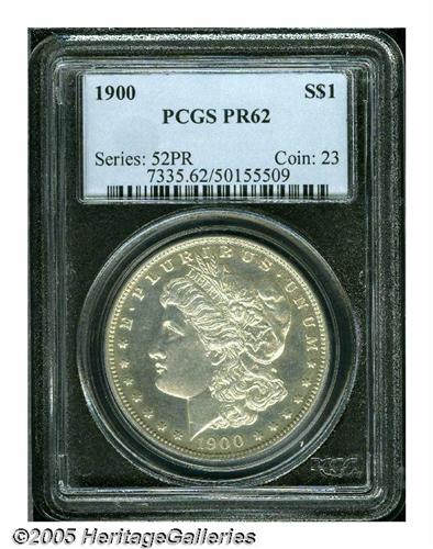 <B>1900<S$1> PR62 PCGS.</B></I> Lovely proof with brilliant surfaces accentuated by golden peripheries. A number of wispy hairlines are seen under close inspection, including a couple on Liberty's chin and cheek. Overall an attractive and appealing proof example of this turn-of-the-century proof issue.